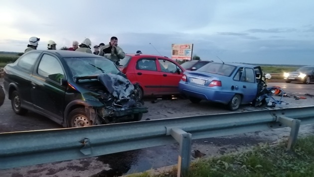Авария произошла накануне в 19.20 на 28 км объездной автодороги. При обгоне в направлении автодороги М8 «Холмогоры» прицеп «Лады Калины» занесло и из него выпал груз. Водитель «Дэу Нексия» решил объехать препятствие и столкнулся с двумя иномарками на встречке. Госпитализированы 31-летний водитель «Дэу Нексии» и 30-летний пассажир, сидевший спереди. Амбулаторное лечение назначено 35-летней женщине, управлявшей «Шевроле Спарк», и 57-летнему водителю «Тойоты». Причины и обстоятельства ДТП на месте выясняли госавтоинспекторы, по результатам будет принято процессуальное решение, сообщает региональное управление полиции.