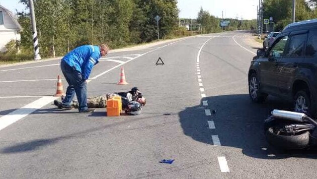 В Конаковском районе опрокинувшийся мотоцикл "остановил" внедорожник