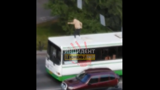 Житель Тюмени забрался на крышу автобуса и станцевал на ней