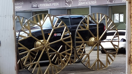 Владелец десятилетней «Приоры» в кузове седан переоборудовал автомобиль в карету на огромных золотых колёсах. После первого же выезда на дороги общего пользования блогер стал звездой социальных сетей и попал в поле зрения сотрудников ДПС. Хозяин необычного седана продемонстрировал автомобиль накануне на Главной городской площади Краснодара. Судя по видео, гигантские колёса приварены к штатным «вазовским» дискам, а те, в свою очередь, скреплены с парой других дисков. Самодельная «проставка» позволила огромным колёсам вращаться, не касаясь кузова, однако водитель и пассажиры лишились возможности открывать двери — забираться в салон приходится через окно: Чудо-автомобиль местные жители окрестили «Приорой» семнадцатого века. Вчера вечером создатель эпатажного транспортного средства в прямом эфире назвал своё творение «самой высокой «Приорой» в мире» и продемонстрировал возможности самоделки на ходу. Несмотря на нешуточные вибрации, «карета» уверенно набрала «пешеходную» скорость: На шоу-кар с 72-дюймовыми колёсами на дорогах общего пользования уже обратили внимание сотрудники ДПС. Пока блогер не прокомментировал, чем закончилось общение с правоохранительными органами. Не исключено, что автомобиль отправили на штрафстоянку, оформив протокол по статье 12.5 КоАП РФ. Источник: Instagram