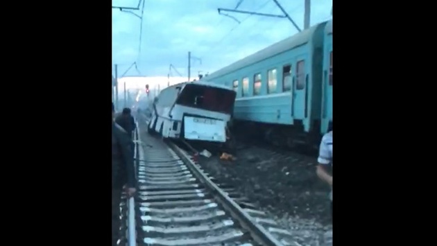 В Казахстане столкнулись автобус и поезд