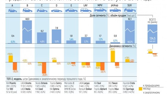 Средние цены на автомобили в августе Аналитики «Автостат Инфо» изучили средние цены на легковые автомобили в августе 2019 года. Из исследования известно, что в сегменте люксовых авто средняя цена в августе этого года установилась на отметке в 6 609 005 рублей. Средний ценник на автомобиль E-сегмента (бизнес-класс) составила в тот же период 2 464 528 рублей. На третьем месте по значению средней цены на авторынке РФ в августе находится SUV-сегмент. Средняя цена машины этого сегмента составила в августе 1 861 853 рублей. В то же время средний ценник на автомобиль D-сегмента составил 1 772 087 рублей, на автомобиль С-класса — 989 189 рублей, а на малолитражки — 893 017 рублей. Рейтинг самых востребованных автомобилей LADA на вторичном авторынке Наименьшее значение средней цены аналитики «Автостат Инфо» зафиксировали в сегменте B — 826 332 рубля, среди минивэнов — 757 870 рублей, а также на рынке автомобилей B+ — 525 516 ед. Напомним, что выручка с продажи легковых автомобилей на российском рынке в августе текущего года составила 202 млрд рублей, а за первые восемь месяцев она достигла отметки в 1,4 млрд рублей.