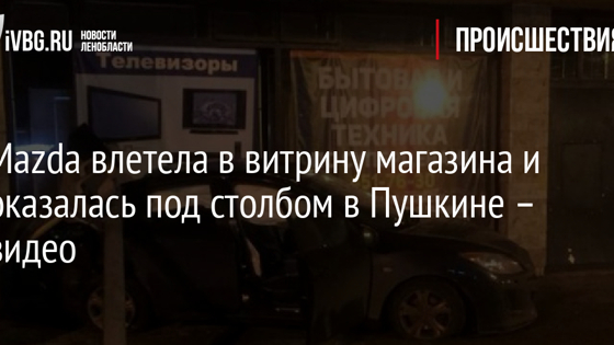 Mazda влетела в витрину магазина и оказалась под столбом в Пушкине – видео