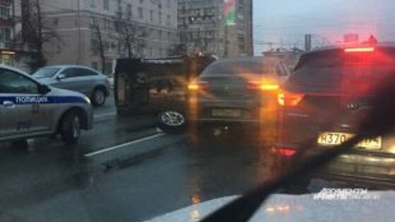 Автомобиль опрокинулся на дороге в центре Челябинска