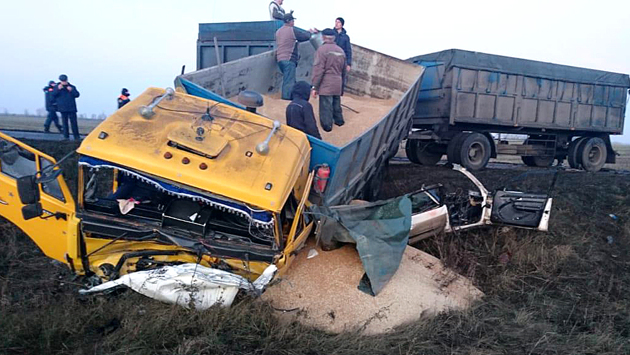 Как уточняет Life, в результате столкновения оба автомобиля оказались в кювете. Очевидцы рассказали изданию, что «КамАЗ» перевозил зерно. После аварии Audi засыпало зерном, поэтому вынести тела из машины пока не удалось.