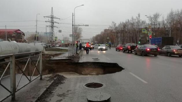 «Уже не в первый раз». В центре Тюмени образовалась большая дыра в асфальте
