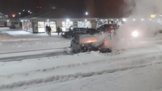 В Ноябрьске загорелась легковушка после столкновения с машиной