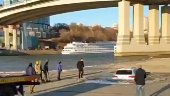 Из-за сильного ветра река Дон в Ростове-на-Дону сильно обмелела. Вода ушла от левого берега до середины русла. Жители города стали прогуливаться по обмелевшему Дону, кто-то решил заехать на машине. Так в субботу 23 ноября мужчина на машине Volkswagen Touareg заехал в обмелевшее русло, но машина провалилась в илистые отложения. Мужчина не пострадал, машину в настоящее время пытаются достать из грязи.
