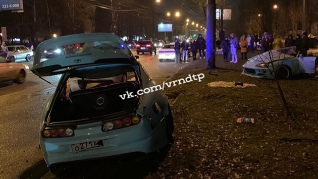 В Воронеже опубликовали фото разорванной столбом пополам Toyota Supra