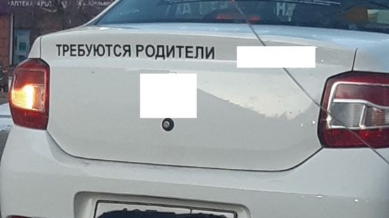 Житель областного центра заметил на дороге машину, владелец которой ищет "родителей". Горожанин прислал в редакцию снимок автомобиля такси, на задней части которого имеется надпись. Судя по написанному, организация или владелец машины ищет родителей. Рядом с текстом указан номер для связи. Предположительно, часть надписи стерлась, поэтому буква "В" на иномарке превратилась в "Р", из-за чего смысл сообщения изменился.