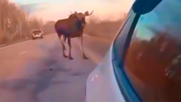 В Самарской области разъяренный лось нападает на автомобили: видео