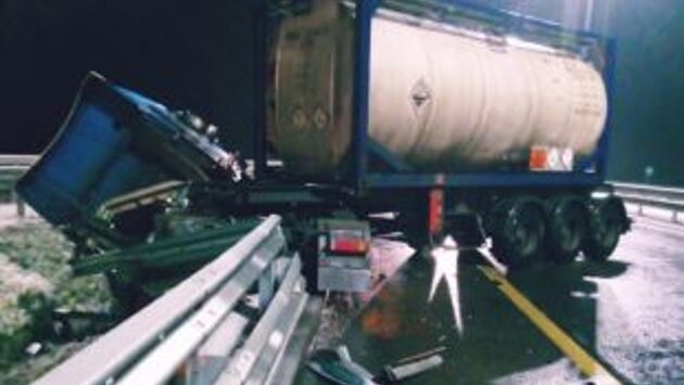 На скоростной трассе М-11 в Ленинградской области автоцистерна протаранила ограждение, сообщили в Госавтоинспекции. Авария произошла в Тосненском районе вечером в воскресенье, 15 декабря, около 22 часов. На 650-м километре автодороги водитель фуры Scania не справился с управлением. В результате машина въехала в силовое ограждение. К счастью, никто не пострадал. По факту ДТП проводят проверку.