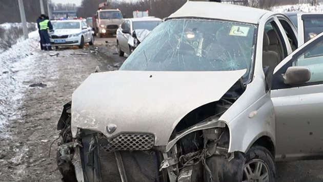 В Челябинске произошла авария со смертельным исходом. Виновница ДТП погибла на месте. Еще два человека, в том числе трехлетняя девочка доставлены в больницу. Авария произошла вечером 17 декабря улице Кожзаводской. 31-летняя автоледи на Тойоте вылетела на встречную полосу и протаранила Хундай Солярис, который потом врезался в Рено Логан. «Я ехал в сторону Лакокрасочного завода, держался крайнего правого ряда. Впереди в пяти метрах ехал Хундай. По встречной полосе ехала Тойота, которая резко сменила направление и врезалась в Хундай, а он в меня. Я не понял, ее просто занесло или она с манёвром не справилась. За рулем Тойоты была женщина-инвалид и ребенок в машине был», - рассказала водитель автомобиля Рено Логан Михаил. В результате дорожно-транспортного происшествия водитель автомобиля Тойота скончалась на месте происшествия «Водитель автомобиля Хундай получил травмы и был госпитализирован. Так же в больницу был доставлен несовершеннолетний пассажир автомобиля Тойота Витц. Это трехлетняя девочка. Их увезли на реанимобилях. В момент ДТП ребенок находился в автомобиле Тойота Витц на заднем сиденье посередине в автокресле и была пристегнута ремнем безопасности», - сообщил начальник ГИБДД Челябинска Алексей Горшков. В настоящее время выясняются все обстоятельства аварии. Видео: ГИБДД Челябинска