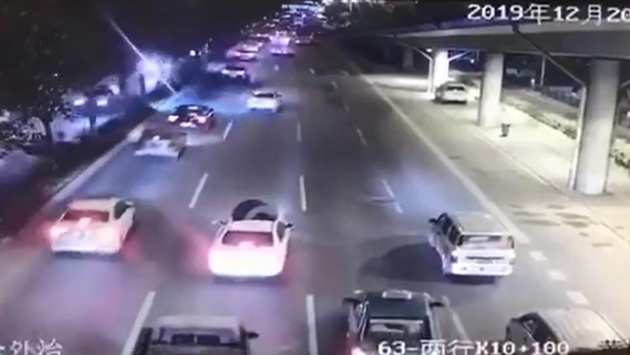 Колесо от грузовика по затейливой траектории поразило легковушку в Китае. Видео