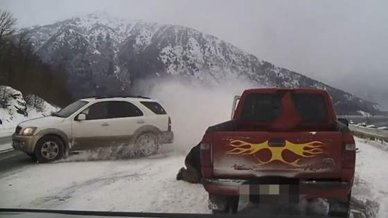 Правоохранители из Анкориджа – города в штате Аляска, опубликовали запись с регистратора служебного автомобиля, запечатлевшего инцидент со счастливым концом, произошедший в минувшую среду, 25 декабря, на севере США. Как говорится в сообщении местного полицейского департамента, водитель эвакуатора и патрульный офицер пришли на помощь автомобилисту, попавшему в затруднительное положение на заснеженной трассе. В тот момент, когда они занимались вышедшим из строя пикапом, водитель встречного внедорожника не справился с управлением. Машина, ушедшая в занос, на большой скорости проскочила на расстоянии вытянутой руки от работавшего человека. После этого транспортное едва не протаранило полицейский автомобиль, и благополучно остановилось, так никого и не задев.