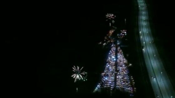 В Петербурге водители устроили флешмоб –они выстроили машины в форме новогодней елки