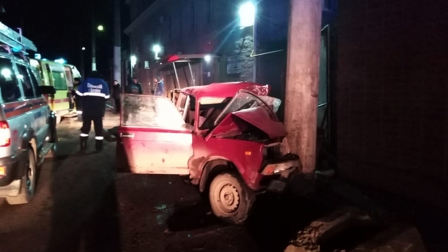 В Батайске пьяный водитель на ВАЗ-2105 протаранил столб, пострадали двое