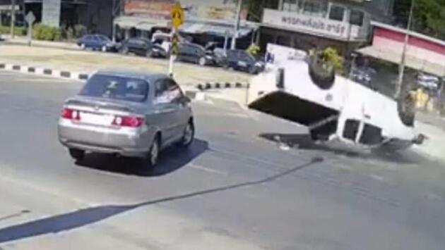 Пикап перевернулся, объезжая легковушку в Тайланде