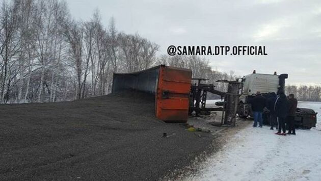 В Самарской области на Рождество перевернулся грузовик с семечками