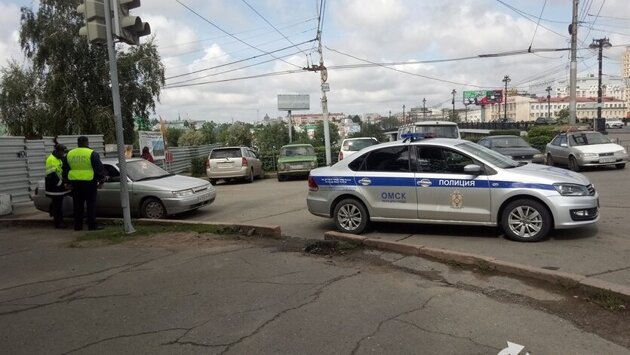 Из-за аварии омскую маршрутку отбросило к жилому дому