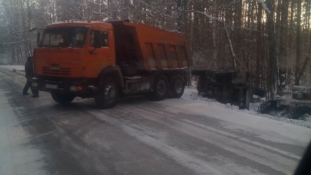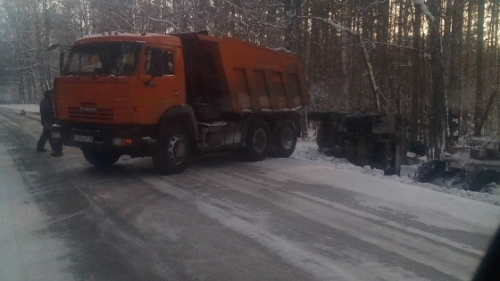 Лесовоз перевернулся на трассе Гурьевск – Сосновка