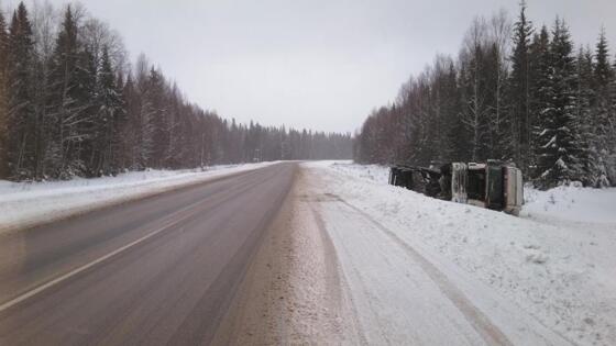В Афанасьевском районе на трассе опрокинулся грузовик