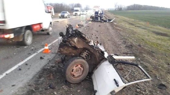 В Тихорецком районе после столкновения с грузовиком ВАЗ разлетелся на части