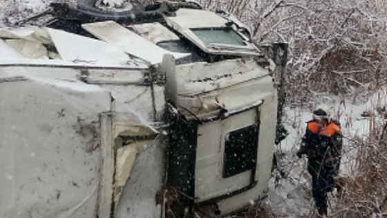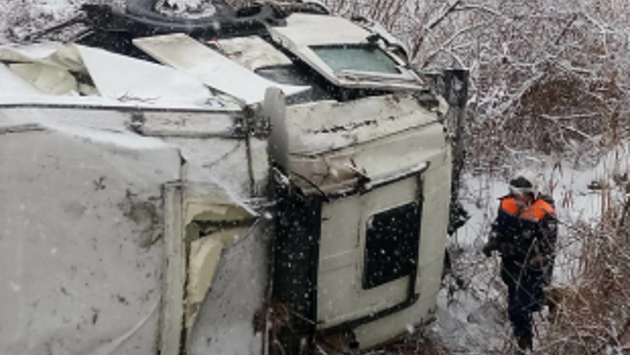 На трассе под хвалынском перевернулся грузовик с пельменями