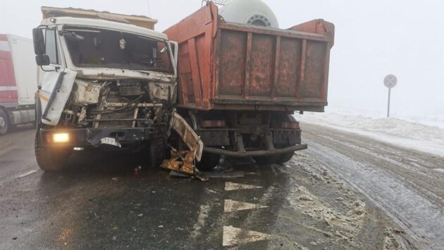 Под Саратовом столкнулись четыре большегруза. ФОТО