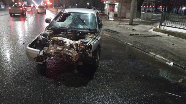 Около остановки на 50 лет Октября ВАЗ влетел в ограждение и столкнулся с KIA: есть пострадавший