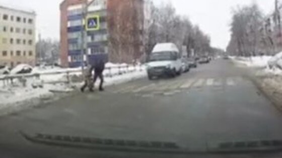 Водитель из Башкирии остановил потом машин и помог маленькому мальчику перейти дорогу (ВИДЕО)