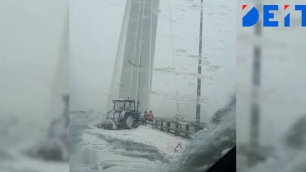 Трактор дорожных служб, задействованных в уборке снега во Владивостоке, попал в ДТП на Золотом мосту. Видеоролик с происшествием уже «гуляет» по пабликам, мессенджерам и социальным сетям, сообщает ИА DEITA.RU Еще рано утром на официальном сайте мэрии Владивостока появилась информация о том, что целая армия спецтехники выехала навстречу непогоде. Во Владивостоке еще ночью начал выпадать обильный снег, традиционно сопровождаемый ветром, надувающим снежные барханы прямо посреди проезжей части. Поэтому машины с реагентами и трактора-щетки неустанно курсируют по ключевым дорогам Дальневосточной столицы, чтобы облегчить жизнь водителям. Один из таких тракторов попал в ДТП и оказался "прибит" к леерному ограждению на мосту через бухту Золотой Рог. Очевидцы выложили видео, на котором виден не только трактор, но и окружившие его дорожники в спецформе.