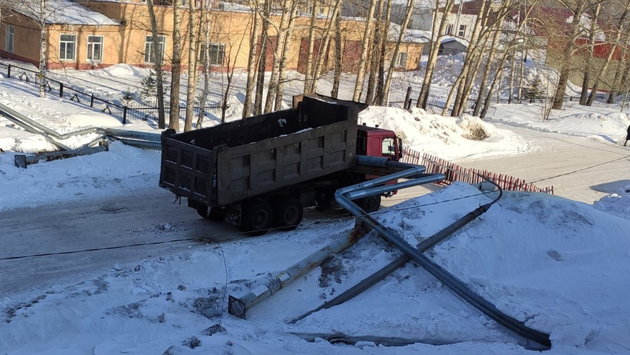 В Анжеро-Судженске накануне вечером большегрузный автомобиль врезался в теплотрассу. В итоге несколько зданий остались без отопления. Вечером 15 февраля самосвал, вывозивший снег с улиц Анжеро-Судженска, разрушил городскую теплотрассу. По словам очевидцев, разместивших фото с места ЧП в Сети, авария произошла напротив отдела полиции на улице Просвещения. Автомобиль ехал ехал с поднятым кузовом и зацепил трубы теплопровода. – Часть домов 3 шахты без отопления вчера была, – рассказали в Сети горожане. Последствия коммунальной аварии устранили к утру 16 февраля, но автомобиль в воскресенье так и стоял на месте ЧП.