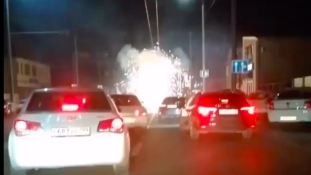 В Краснодаре трое парней остановили движение на Тургенева фейерверком