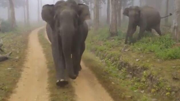 Агрессивные слоны устроили погоню за машиной с туристами в Индии
