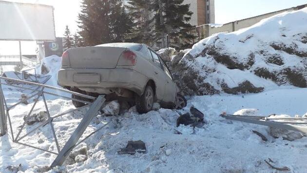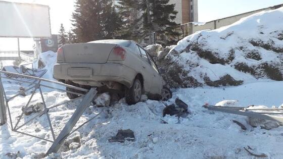 Инцидент произошёл на пересечении федеральной трассы Р-256 и улицы Горького в Бердске сегодня утром, и закончился для водителя автомобиля Toyota Platz экстренной госпитализацией. Его машина подскочила на бордюре, выбила правое переднее колесо,в полете проломила ограждение и буквально воткнулась «мордой» в ледяной сугроб. Как рассказал порталу Автобердск товарищ пострадавшего, приехавший сторожить разбитый автомобиль до приезда сотрудников ГИБДД, Platz двигался по трассе со стороны Новосибирска в сторону улицы Спортивной. На перекрёстке его подрезала другая иномарка, выезжавшая, судя по всему, на трассу с улицы Горького или остановившаяся у светофора. После случившегося «провокатор», по словам мужчины, спокойно продолжил движение в сторону Искитима, а водителя Toyota с травмой головы с места происшествия увезла карета скорой помощи. Насколько серьёзно он травмирован можно судить по «паутине» на лобовом стекле и изуродованной передней части автомобиля О резком перестроении Toyota Platz с трассы в сторону заледеневшей горы снега за дорожным ограждением красноречиво свидетельствуют оставленные на дороге следы торможения авто. Читайте также «Пьяная дама на «Субару» снесла с дороги «Газель»