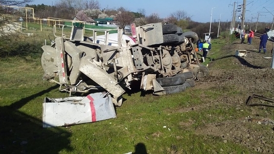 В Крымском районе Краснодарского края 13 марта произошло ДТП с участием железнодорожного состава и бетономешалки. Авария произошла на железнодорожном переезде в хуторе Красный. По предварительным данным, водитель бетономешалки выехал на железнодорожный переезд перед приближающимся поезд, после чего произошло столкновение.От сильного удара грузовику снесло кабину. В результате ДТП пострадали три человека. Травмы получил водитель грузовика, а также машинист поезда и его помощник. У помощника машиниста врачи диагностировали открытые перелом ноги. Ему наложили шину и остановили кровотечение. На месте происшествия работают сотрудники Крымского поисково-спасательного отряда.