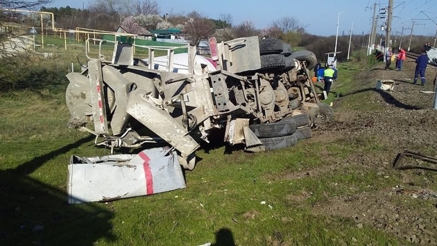 На Кубани поезд протаранил бетономешалку, пострадали три человека