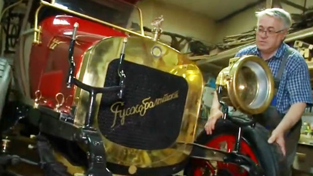 На фото - Великий князь Константин Константинович Романов, двоюродный дядя императора Николая Второго. В его гараже было аж три автомобиля марки «Руссо-Балт». Когда сидишь за рулем такого авто, ощущение, будто история оживает. Первый русский автомобиль построили на вагонном Русско-Балтийском заводе в Риге в 1909 году. Его прототипом был бельгийский автомобиль «Фондю». В России «Фондю» улучшили - так получился С-24/30. «На самодвижущееся шасси ставили карету. А кузов делали в каретной мастерской», - рассказывает автореконструктор Владимир Курдюмов. Отечественный автомобиль стал более проходимым, чем бельгиец. Диаметр колес увеличили - раму подняли. Все потому, что дороги, в основном, были грунтовые. «Высота колеса позволяет заехать в грязь, колесо продавливало грязевой промежуток до сухой земли и машина двигалась», - продолжает Владимир Курдюмов. Купить чудо техники могли только самые богатые. Для сравнения, С-24/30 стоил как 50 породистых лошадей или 120 мясных коров. И цена не с потолка: детали делали вручную. «Все расписано золотом, на ткани - лилии». Все это, точь-в-точь воссоздает Владимир Курд.мов, автомеханик и реконструктор. Оригинальные чертежи купил на заводе «Руссо-Балт» за 350 тысяч рублей. На изготовление одного лишь колеса ушел месяц. «Англичане сделали покрышки, металлический обод - голландцы. Мы изготовили деревянную часть и здесь собрали». Ни одного экземпляра С-24/30 не существует. После революции завод перестал выпускать автомобили. До нас дошел лишь один экземпляр авто, и то - другой модели. Думаю, что современные автомобилисты ни разу в жизни такой двигатель не видели. Он состоял из двух блоков, в каждом - два цилиндра». Воссоздать двигатель - самое сложное во всей работе. После его создания дело будет за малым. Корпус авто уже сейчас может ехать. Через полтора года первый и последний автомобиль царской России впервые проведет по улицам нашего города. Последней точкой в его поездке станет автомобильный музей, который автореконструктор планирует открыть в Новосибирске. Все выпуски новостей телеканала ОТС, а также программы «Итоги Недели», «ПАТРИОТ», «Экстренный вызов», «Пешком по Новосибирской области», «ДПС – Дорога. Перекресток. Судьба», «От первого лица» выложены на сайте YouTube.