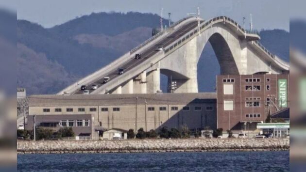 Этот почти вертикальный автомобильный мост, сооруженные японскими инженерами, считается едва ли не мировой достопримечательностью. И впрямь, глядя на то, как спускаются по нему, цепляясь всеми силами за дорожное покрытие, автомобили с отважными японскими «автолетчиками», невольно захватывает дух. А если ты сам находишься в таком автомобиле, то впечатление от «японских горок» будет куда по экстремальнее, чем от американских. Ведь здесь не предусмотрены какие-либо дополнительные защитные меры по собственной безопасности. Все дело было в проливе под мостом, который являлся судоходным. Мост должен был соединить два японских города - Мацуэ и Сакаиминато. В итоге инженеры-конструкторы разработали конструкцию моста, которая напоминала пирамиду. Общая протяженность конструкции полтора километра, которая как раз и не позволяла установить разводной мост. Учитывая «крутое пике» (большой угол возвышения), подниматься и спускаться с такого моста - работа не из легких. Удержаться на нем, а еще и двигаться, поможет только первая передача и железобетонное терпение. Для тех водителей, которые только начали подъем вверх, создается иллюзия, что дорога вверху обрывается, а у тех, кто с пика начинает спуск, страх пробирает до самых пяток от ощущения, что машина вот-вот сорвется в пропасть. Впрочем, инженеры рассчитали все до мелочей, чтобы беды не случилось.