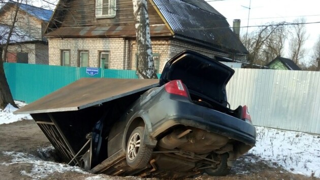 В Твери автомобиль вместе с остановкой съехал в канаву