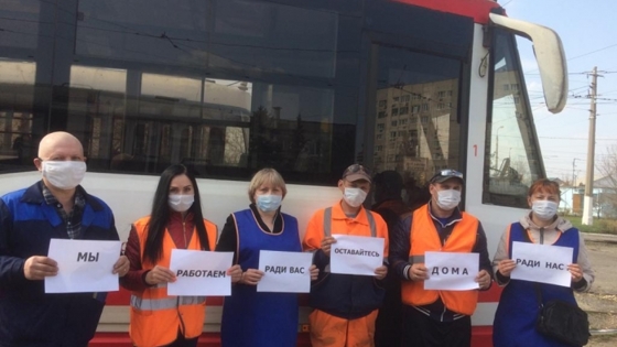Сотрудники городского транспортного предприятия присоединились к акции #СидиДома. Водители общественного транспорта в Волгограде приняли участие во флешмобе, которая была запущена россиянами в марте. В соцсетях сотрудники транспортного предприятия опубликовали фото, на котором водители трамваев и троллейбусов держат в руках листы бумаги с надписью: «Мы работаем ради вас, оставайтесь дома ради нас», рассказали в мэрии. Ранее к акции присоединились волгоградские полицейские, пожарные и сотрудники больниц. Флешмоб #СидиДома призывает жителей страны соблюдать режим самоизоляции и беречь здоровье. В Волгоградской области такой режим начал действовать сегодня. Продлится он до 5 апреля. В этот период жители и гости региона могут выйти из дома, чтобы купить продукты и вещи первой необходимости, выгулять животных, получить срочную помощь врача.