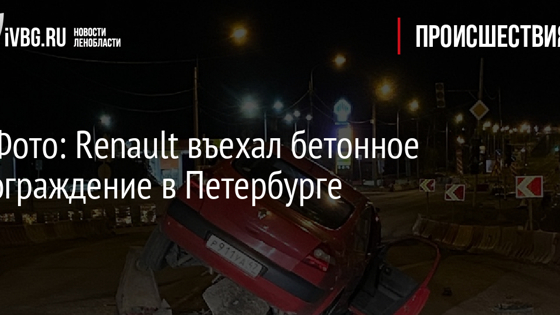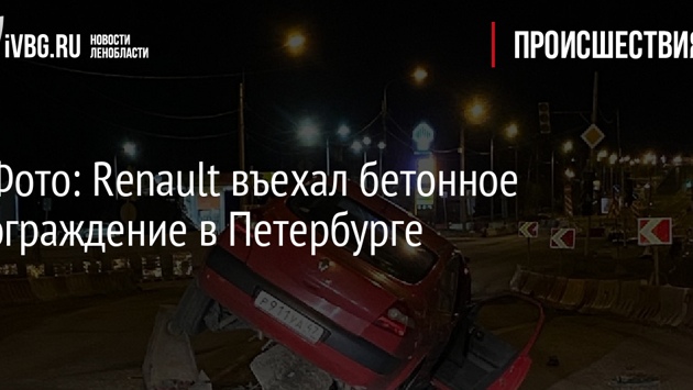 Фото: Renault въехал бетонное ограждение в Петербурге