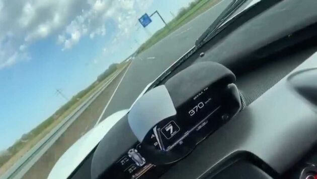 Управляя суперкаром Ferrari, очень трудно не опробовать его мощность на безлимитном немецком автобане. В составе гибридной силовой установки Ferrari LaFerrari, вышедшего семь лет назад, уже один атмосферный V-образный ДВС с 12 цилиндрами на 6,3 литра может похвастать мощностью 800 лошадиных сил. При помощи двух электродвигателей он производит уже 963 л.с., что позволяет автомобилю массой 1,27 тонны разменивать первые 100 км/ч менее чем за три секунды. Голые цифры не слишком впечатляют, а вот в видеоролике, снятом на немецкой магистрали, разгон выглядит весьма убедительно. Менее минуты требуется LaFerrari, чтобы разогнаться с 217 до 372 км/ч. Молодой человек на 217 км/ч включает шестую передачу и с оглушительным рёвом двенадцати цилиндров автомобиль начинает резко ускоряться. Пройдя отметку в 306 км/ч автомобилист снова повышает передачу и продолжает разгон. С лёгкостью перевалив через обещанную производителем максимальную скорость в 350 км/ч, рекордсмен до конца видео умудряется набрать 372 км/ч. В установлении дорожного рекорда водителю помог пустой автобан, за всё время разгона он опережает лишь три машины.