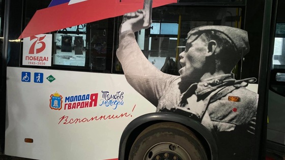 В Тамбове в рамках проекта «Молодой Гвардии» «Вспомни» символикой Дня Победы украшен автобус. Он начнёт курсировать по маршруту «1» уже сегодня вечером.