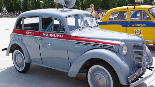 Начиная с первых десятилетий после войны и до самой перестройки, в СССР, помимо милицейских «Волг», стали распространяться более доступные машины малого класса, тогда называвшиеся малолитражными. Вначале ими стали «Москвичи», а с 1970 года к ним присоединились и «Жигули». Организация массового производства недорогих легковых автомобилей дала возможность обеспечения советской милиции достаточным количество патрульных машин. Первые автомобили. Первым из таких автомобилей распространение получил «Москвич-400-420», выпускавшийся на Московском заводе малолитражных автомобилей. В 50-е годы средств, которые выделялись на закупку служебных машин, было недостаточно для приобретения «Победа» М-20. Это стало причиной использования в некоторых отделениях милиции «Москвичей». На тот момент заводу не было предписано разработать машину особой конструкции, уже на месте автомобильные хозяйства своими силами обустраивали эти седаны громкоговорителями, добавочными приборами освещения и остальными необходимыми приспособлениями. Самостоятельно проводилась и работа по окрашиванию машин в синий цвет, и нанесению отличительных знаков - красных полос и надписей. Придание автомобилям милиции единой окраски было утверждено приказами министра внутренних дел от 1953 и 1957 годов. «Москвич» был на порядок лучше, получившего в то время большое распространение в рядах милиции, мотоцикла с коляской модели М-72. Его положительными качествами были устойчивость и управляемость, а также предоставление уровня комфорта, недоступного мотоциклам. По такому показателю, как маневренность, он был намного лучше «Победы», а по проходимости был не хуже ГАЗ-67, что на тот момент было немаловажным. «Москвич 403 и 407». В 60-е годы, когда приказом было устранено общесоюзное МВД, а руководство милицией стало осуществляться Министерством охраны общественного порядка, централизованная система проведения закупок автотранспорта перестала действовать. В это время местными хозяйственными управлениями часто закупались для милиции не «Волги», а «Москвичи» 407 и 403 модели. Наличие просторного салона с возможностью отопления создавало для экипажа, осуществляющего дежурство, более комфортные условия, чем это было в моделях предыдущих поколений. В багажнике мог разместиться набор инструмента для криминалистических исследований, или радиостанция для обеспечения связи. МЗМА несколькими годами раньше ГАЗа была выпущена модель с кузовом универсал. Ее преимущества были оценены кинологами, так как на заднее сиденье можно было легко разместить служебную собаку. «Москвичи» этого поколения были окрашены в синий цвет с красной полосой на боковой части кузова. С 1963 МООП были введены новые стандарты - кузов бирюзово-голубого цвета, и полоса красного цвета исключительно на передних дверях. Для «Москвича» конструкторами МЗМА был разработан новый тип мотора 412, сумевшего уверенно поставить эту машину советского производства в один ряд с передовыми европейскими моделями. Производились они на Уфимском моторном заводе. Новый внешний вид. Приказом министра МВД№ 228 от 22 сентября 1969 года, был утвержден новый стандарт для окраски автомобилей милиции - кузов желтого цвета, синяя полоса на бортах, синего цвета багажник. Вне зависимости от марки автомобиля, для них предлагался идентичный набор о