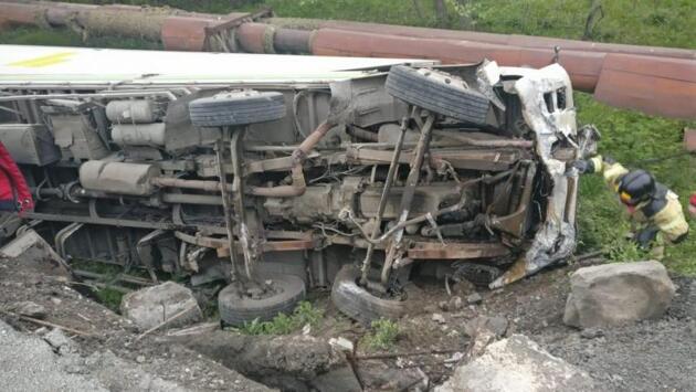 В районе 90-го км автодороги Артем – Находка – порт Восточный произошло ДТП, в ходе которого пострадали мужчина и пятилетняя девочка, сообщает PRIMPRESS со ссылкой на пресс-службу УМВД Приморья. Виновником аварии стал водитель грузовика Hino Profia, который не справился с управлением и врезался в автомобиль Toyota RAV4, остановившийся на перекрестке на запрещающий сигнал светофора. После столкновения грузовик продолжил движение, пробил бетонные ограждения на мосту и свалился с него, при падении совершив опрокидывание. Отмечается, что мостовое сооружение было закрыто для движения в связи с проведением ремонтных работ. Пассажиры «Тойоты» – 32-летний мужчина и пятилетняя девочка – госпитализированы с черепно-мозговыми травмами. Сейчас выявляется степень причиненного их здоровью вреда. Авария произошла в дневное время суток при благоприятных погодных условиях. Место происшествия не является аварийным участком. Водитель грузовика был трезв, причиной ДТП стала неисправность транспортного средства, возбуждено административное производство по соответствующей статье («Управление транспортным средством с заведомо неисправной тормозной системой»), а также по статьям «Управление транспортным средством без тахографа» и «Нарушение правил дорожного движения или правил эксплуатации транспортного средства, повлекшее причинение вреда здоровью». Это уже девятое нарушение водителем правил дорожного движения за 2019-2020 год. Всего стаж водителя составляет 18 лет.