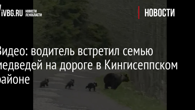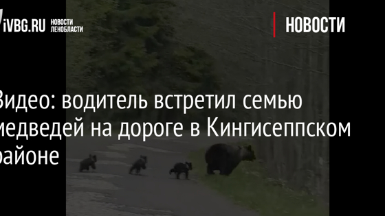 Видео: водитель встретил семью медведей на дороге в Кингисеппском районе