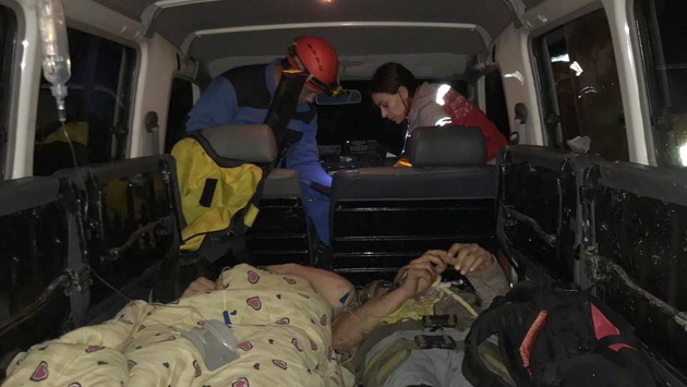 В Сочи около полуночи в минувший четверг на горной дороге в селе Медовеевка автомобиль УАЗ рухнув в обрыв с 40-метровой высоты, в момент ДТП из салона выпали двое мужчин. Им понадобилась помощь спасателей. Специалисты Краснополянского подразделения ЮРПСО МЧС России доставили до пострадавших трех сотрудников Скорой помощи: из-за трудно проходимой дороги медики не могли доехать до места аварии самостоятельно. "Используя альпинистское снаряжение, сотрудники МЧС спустились по крутому склону к пострадавшим и на жестких носилках транспортировали мужчин 1976 и 1983 г.р. к дороге, передав их сотрудникам Скорой", - рассказали в пресс-службе ведомства. Фельдщеры и врач оказали пострадавшим медицинскую помощь - установили одному из мужчин инфузионную систему, наложили на поврежденные конечности фиксирующие повязки. Затем спасатели на служебном автомобиле вывезли пострадавших из горно-лесной местности к машине Скорой помощи. По предварительным данным, один из пострадавших получил переломы таза и бедра, второй - травмы руки и ноги.