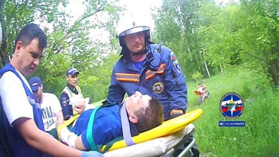Спасатели МАСС помогли врачам донести на спецносилках пострадавшего мотоциклиста 1953 года рождения до машины «Скорой». Спортивный байк нашелся неподалеку. Инцидент произошел 22 мая в лесополосе вдоль дороги по улице Тайгинская Калининского района Новосибирска. Мужчина пенсионного возраста занимался мотоспортом в компании друзей, но не справился с управлением и улетел в овраг. Мужчина получил переломы обеих рук и одной ноги. Экипаж спасателей обнаружил мужчину в неглубоком овраге в лесополосе вдоль дороги. Мотоспортсмен был в сознании. Спасатели и врачи оказали ему первую помощь, наложили шины на повреждённые конечности, уложили мужчину на жёсткие носилки, зафиксировали. 350 метров тащили к машине «скорой», которая увезла его в больницу. Читайте также: «Мотоциклист опозорился на Димитровском мосту в Новосибирске»